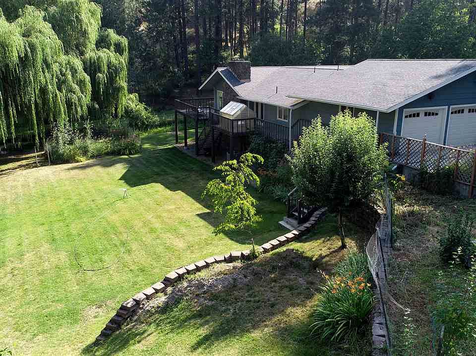 Close-in private acreage (to Valley & Northside). A spacious custom rancher w/walkout daylight bsmt looks out over a B'ful scenic park like setting. A 30' x 40’ shop just NE of the residence in its own private area w/power & paved driveway (Business Ready!). A small creek runs thru the center of the property. The lower section of the property has a gentlemen’s orchard, a place for fowl, goats or sheep, if desired. Features include a formal sunken Liv Rm & remodeled kitchen. Great well. Motivated seller!