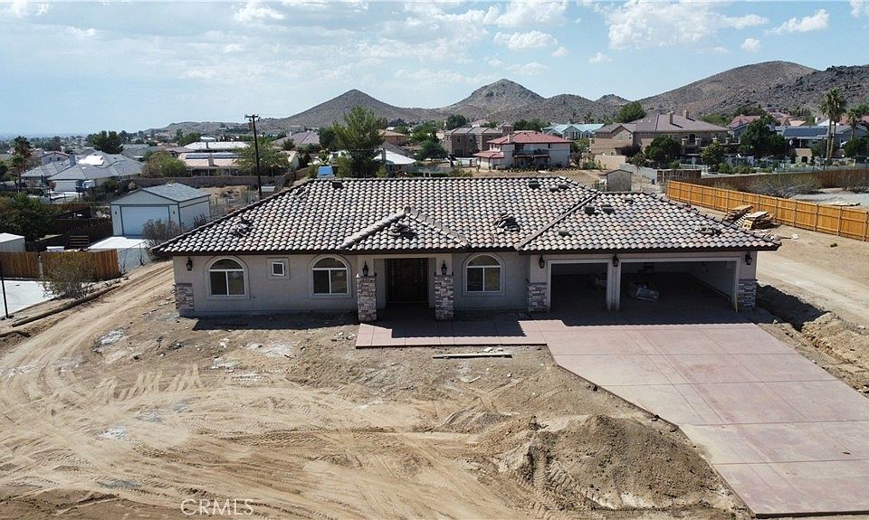 A beautiful new construction home located in the apple valley golf course area with beautiful desert landscaping fencing colored and stamped concrete just to name a few of the exterior and for the interior you have large tile crown molding quartz fireplace 3 bathrooms 4 large bedrooms walk in closet in the master come check out this home