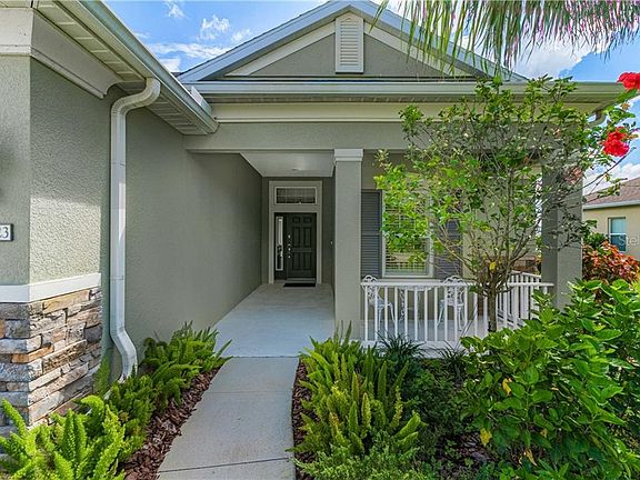 With abundant curb appeal and all the right spaces, you will love this 4 years young River's Reach home. Built solid by Neal Communities, this home is loaded with upgrades and value. A stacked-stone entry way leads you past the three-car garage to the front door entry which has a charming sitting patio. The interior of this home is loaded with upgrades- tile floors throughout the main living areas, pool and lake views from the main living areas, tray ceilings and pendant lighting, pocketing sliders, plantation shutters and much more. The kitchen is built for a chef with stainless appliances, granite-topped island, seating bar, and tile backsplash. The floor plan offers a nice split so that everyone can have their own space and draws the family together around the pool where sunsets are glorious nightly. The pavered pool deck, caged pool, and covered outdoor space round out this fine home. In River's Reach there is plenty of elbow room, and the sky views area amazing. As an added bonus, you can enjoy use of the community kayak launch, resort style pool, fitness center, walking trails, and abundant scenic views. The house has all the right spaces, and the community is a gem- schedule your showing of this fine home today!