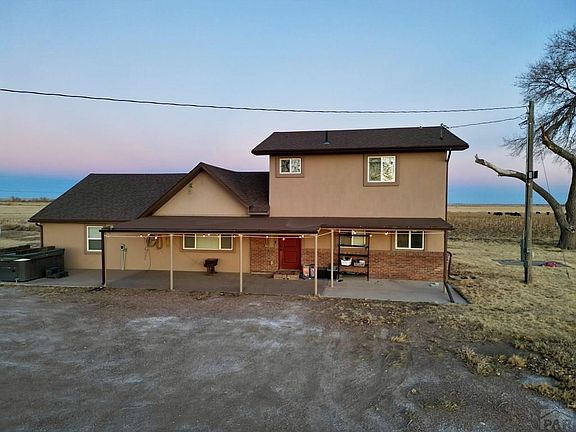 Experience country living in this upgraded 3 bedroom, 2 1/2 bathroom farm house sitting on a secluded 1.48 acres. Located 9.7 miles east of Las Animas, the property is surrounded by farm ground and grass pastures leaving wide open views, and peace and quiet. The property is also located 12 miles from John Martin Reservoir State Park where outdoor recreation awaits. The homes interior features an oversized living room with vaulted ceilings and large picture windows facing east and west. A large main level master suite features an attached bathroom which includes double sinks, walk in shower, jetted soaking tub, and walk in closet. The other 2 bedrooms and full bathroom are on the second level. There is a designated laundry room that also has a toilet and sink for a second main level bathroom. The open kitchen has wrap around cabinetry with plenty of countertop space. There is enough room for a dining room table and a glass walk through door leads to an open cement patio with picnic table. A closet off of the kitchen creates easy access to the HVAC system, on demand hot water heater, and well pressure tank. The covered patio at the front of the home is west facing so you can experience every beautiful sunset that Colorado has to offer. A one car garage sits on the property which includes a heated and cooled finished living space, built in bunk beds and closets. Modern country living is hard to come by, make this one your own! Call to schedule your showing, today!