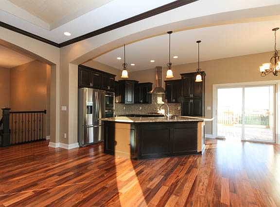 Complete info: http://16526dellwooddr.AgentMarketing.com - This 4-5 bedroom ranch has elegant style & a floor plan to die for. 3300+ finished sq ft w/ exquistite details - Tigerwood hardwood flooring, espresso-stained cabinets, oil-rubbed bronze fixtures, SS appl, granite, tray ceilings & arches. Three bdrms up (or 2 bdrms w/ possible office). 4 bdrms & office or 5 bdrms. Great master bdrm suite w/ walk-in custom closet and beautiful spa bath. The other 2 bedrooms on the main level are split from the master for max privacy. The daylight lower level offers a spacious 2nd family room w/ stone fireplace & gorgeous granite wetbar. 2 bdrm suites (each w/ own bath) are split on opposite sides of the family rm. Covered deck, mudroom/laundry, irrigation & central vac. & great storage space. Waukee Schools.