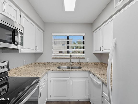 Cozy 2-bedroom, 2-bath condominium in the heart of Fountain Hills. This move-in-ready home features granite countertops, tile flooring throughout, fresh interior paint, and all-new blinds. Enjoy views of the upcoming International Dark Skies Discovery Center from your windows. Perfectly situated within walking distance to the Avenue of the Fountains and Fountain Park, offering easy access to dining, shopping, and community events.