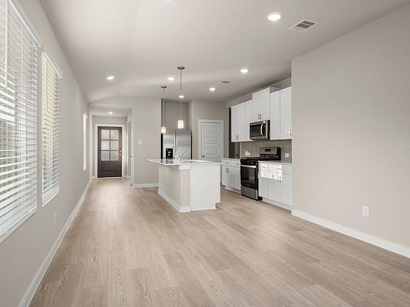 Like new construction home! Fabulous, single story home, situated at the end of a cul-de-sac street in the fabulous community of Marveda! From the moment you drive up to the home, you will fall in love with the curb appeal with light brick and rich paint colors. As you enter the home, you will appreciate the beautiful luxury vinyl plank throughout the main living areas, grand luxury kitchen with an abundance of counter space and cabinetry, and an open layout for easy entertainment. The primary bedroom is tucked away from the main living area with an ensuite bathroom. Two additional bedrooms are located up towards the front of the home along with a flex room which could be used as a dining room, study, or whatever your heart desires. Step outside onto your extended back patio and fall in love with your oversized and private backyard. This is one of the largest lots in the neighborhood! Available for move in 12/1/2025. Schedule your viewing today!