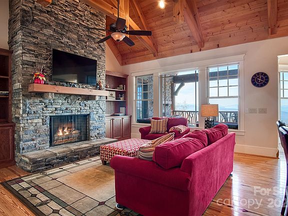 Discover this executive-style residence with 4 BRs & 4 ensuite baths for unparalleled comfort. The main level boasts hardwood flooring & tongue & groove ceilings, centered around a stacked stone gas fireplace. The kitchen features stainless appliances, granite countertops, & an island with a 5-person breakfast bar, offering long-range views. The primary suite is a retreat with a jetted tub, step-in tile shower, walk-in closet & private balcony & exterior fireplace. With a split floor plan, 2 additional bedrooms & first-floor laundry add ease to living. The full basement offers a kitchenette, 2nd laundry, den with a pool table, & a living area with another fireplace. A bonus bunk room & 4th BR w/ensuite bath complete the lower level. Enjoy outdoor living with a covered porch, screened terrace, fire pit & stone grill. Paved circular drive, high-speed internet, & a whole house generator ensure convenience & peace of mind. Experience multiple layers of long-range views of the Smoky Mtns.