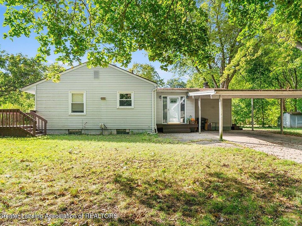 for those chilly winter evenings and french doors that lead to the back yard. Appliances, including the washer and dryer stay. The Carport will save you from shoveling snow and ice off your car this winter. The lower level is dry and ready for some creativity. The yard is partially fenced and has mature trees for privacy.
