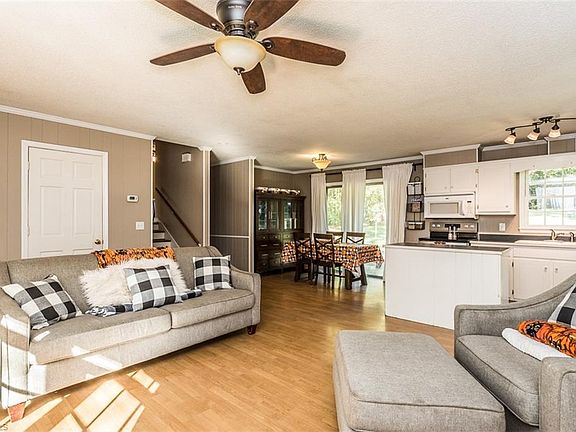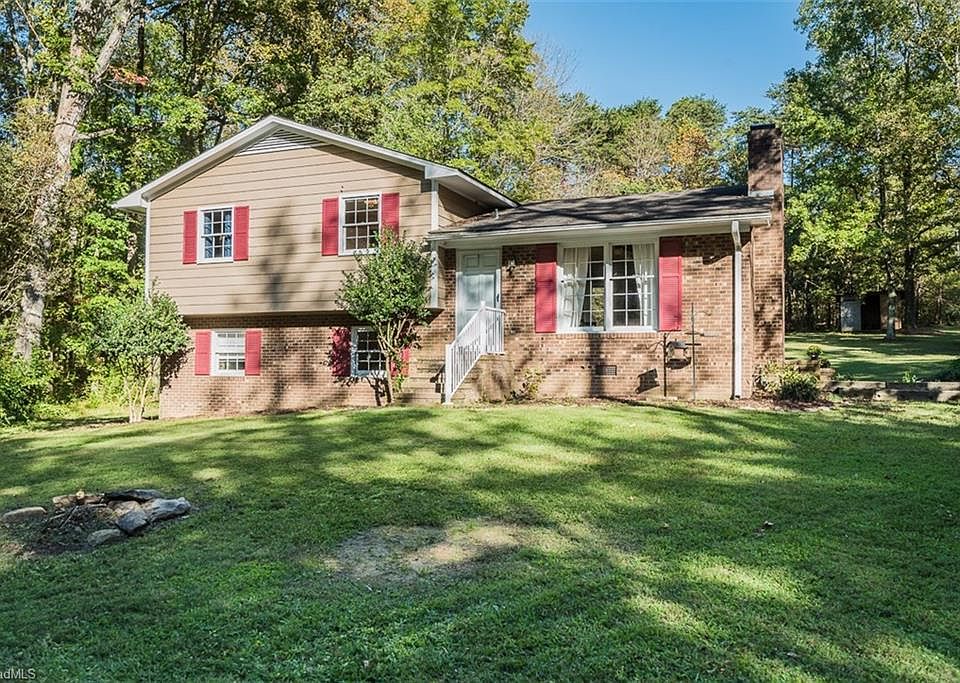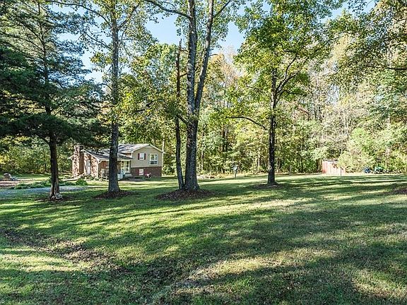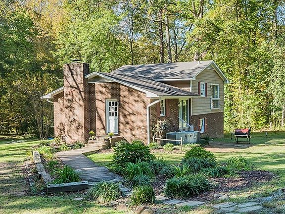 Charming split level convenient to Elon and Burlington, yet tucked away in the woods on a half acre lot! Open concept kitchen/dining and living room. Lower level features newer LVP flooring in a large den/flex space with a large storage room or potential office and 1/2 bath. Water filtration system for well. Outbuildings/sheds for storage.