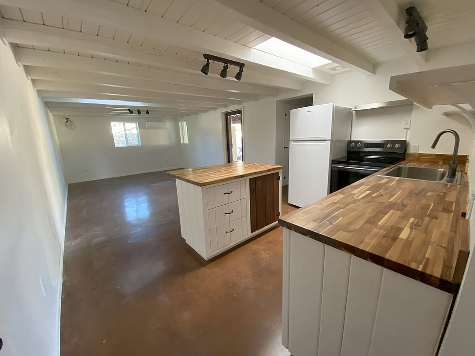 Light-filled, townhome-style 1bd/1ba near the UofA along the Campbell Ave. corridor with easy access to so many great restaurants and other amenities. Newly remodeled (new windows, electrical, plumbing, insulation, HVAC, etc) with exposed beams, concrete floors, kitchen island/breakfast bar and large brick patio and fenced in yard including porch. Unit is set way back from the street in a safe and quiet neighborhood, with dedicated off-street parking. Secured bike storage. Covered parking in carport. Unit shares driveway, and laundry facilities with two other units. Custom tile step-in shower. We're currently putting the finishing touches on the unit as we start to show it. **Showing by appointment only** Seeking long-term tenant(s) (12-month minimum). This is a quiet neighborhood and tenants are asked to be mindful/respectful of neighbors. Tenant pays one third of utilities, which are in landlord's name, except for internet. Tenant is responsible for their own internet service. No smoking indoors. Pets will be allowed on a case-by-case basis, with a $300 pet deposit. Tenants responsible for maintaining their private patio area (weeding and general tidying). We check credit reports.