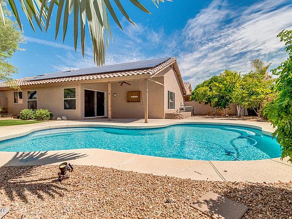 Gorgeous Chandler home with a pool and has never been rented before. It is in fabulous condition with some really stylish upgrades. Carpet has never been lived on. Enter into the open great room floorplan with vaulted ceilings. Kitchen is spectacular and includes all the wine refrigerator. The master suite features spacious bath with dual sinks and walk-in closet. The grassy backyard with covered patio and sparkling pool is the perfect place to relax and enjoy the Arizona lifestyle year round. Pool service is included. Corner lot with North/South exposure. Save lots of money with the reduced electric bills from the solar. Ceiling fans in every room. Conveniently located in Chandler near numerous shopping and dining experiences, and easy access to freeway.