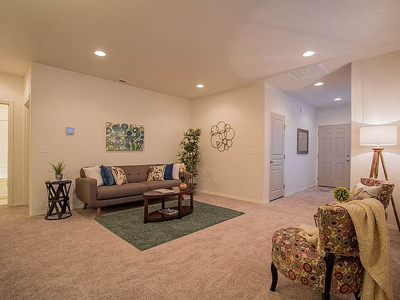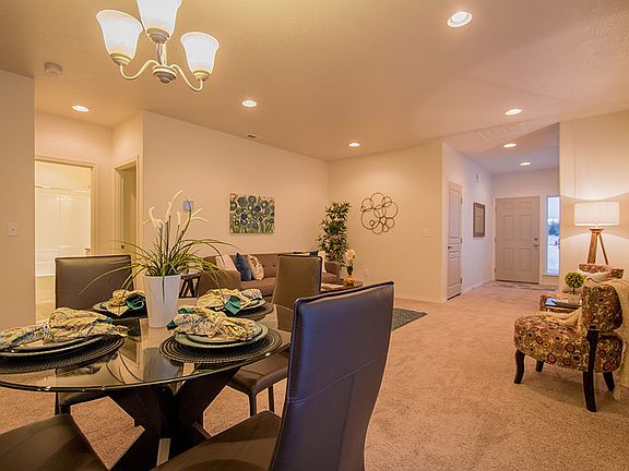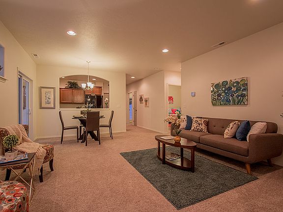The Canyon makes every bit of its 1201 square feet count, offering great comfort in a modestly sized single level plan. The spacious living room adjoins the dining room, and the efficiently-planned kitchen boasts ample counter space and cupboard storage. An expansive main suite features a dual vanity bathroom and a generous closet. The other two sizeable bedrooms - one of which may be converted into an optional den - boast large closets and share the second bathroom. It's no surprise this home is as popular as ever. * Photos and floorplan are of a similar home. Upgrades and selections shown may vary. Contact Agent for specific details.