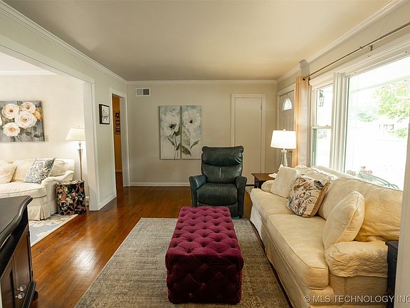 Welcome to this charming 2 bedroom/1 bath bungalow, ideally located just a stone's throw away from the vibrant Rose District in Broken Arrow, OK! Just a block away from Central Park/Community Center and Veteran's Park. This adorable home boasts a spacious yard perfect for outdoor enjoyment that includes a 12x10 deck, perfect for relaxing or entertaining, and a 10x20 metal workshop/shed that offers ample space for your hobbies or extra storage. A full roof, LP Energy Efficient siding, on-demand hot water heater, and vinyl windows were placed in 2020. Inside, you'll appreciate 2 living spaces with the living room and den. The den would make a perfect office space with the added built in book shelves. Not to mention the beautiful original hardwood floors. For added convenience, the range/stove, refrigerator, safe, and washer and dryer are all included, making this home move-in ready. Don't miss the chance to make this cute bungalow your own. Schedule your showing appointment today!