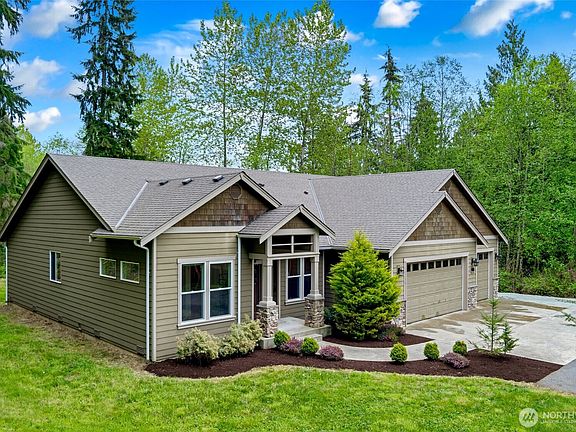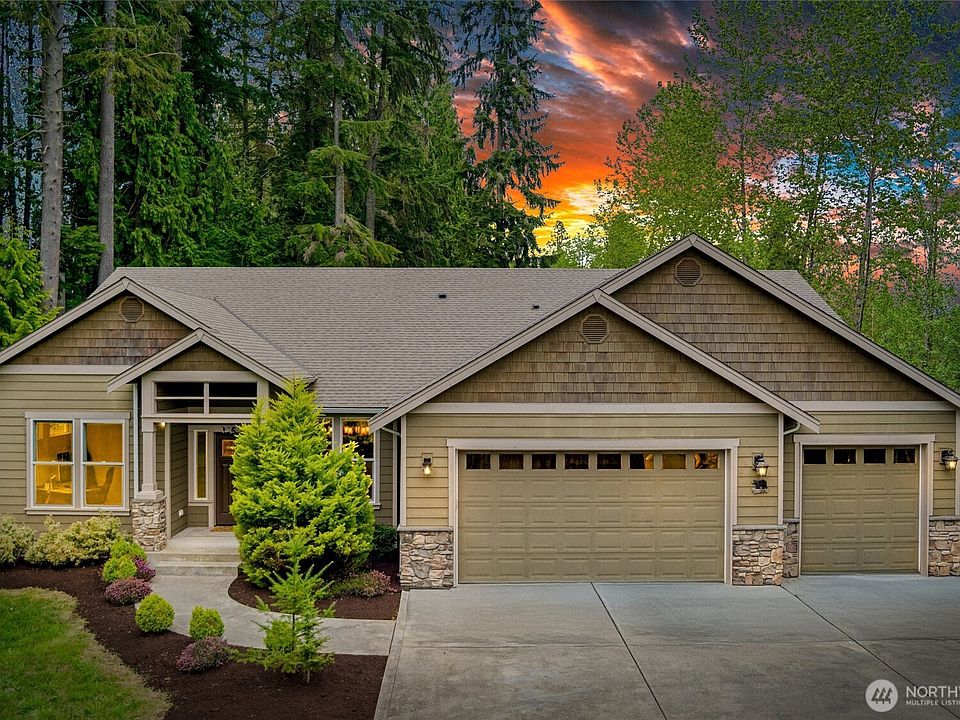 Enjoy peaceful living in this pristine rambler resting on 1.02 acres nestled beside the lake and a lush greenbelt. Located in a gated community this exceptional 2,268 sqft home offers an open-concept design that showcases a gourmet kitchen & thoughtful upgrade at every turn. Move smoothly from the inviting Great-Room space to the expansive covered outdoor living area complete w/ cozy indoor/outdoor fireplace for year-round enjoyment. Beyond the private backyard retreat - ideal for gardening & play - enjoy over an acre of privacy and the potential convenience of RV/boat parking. As a resident you have exclusive access to serene Trophy Ponds, a non-motorized lake, stocked annually w/ trout. Enjoy fishing, paddling & exploring at Trophy Ponds.