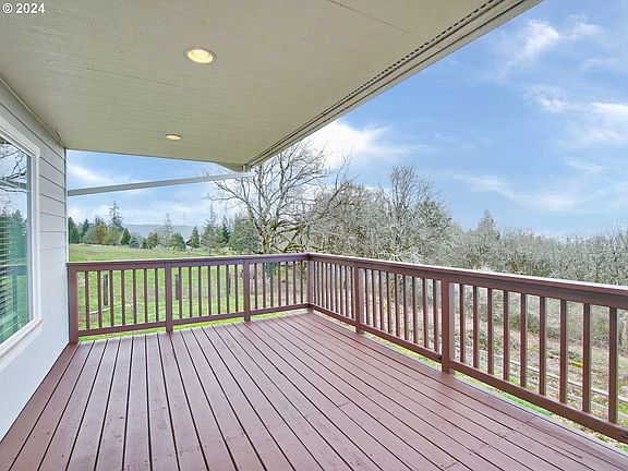 View property above Newberg. Amazing sweeping SW facing views. Recently renovated. Home has new roof, carpet, paint. Gas appliances. Granite counters. Primary bedroom with big walk in closet. Downstairs has two more bedrooms with jack and jill bath. Family room that opens to patio. Oversized two car garage with over 900SF with high overhead garage doors and room for hobbies. Above garage is an unpermitted apartment with one bedroom, zonal heat, electric hot water heater. Septic. Shared well. This is a must see property!
