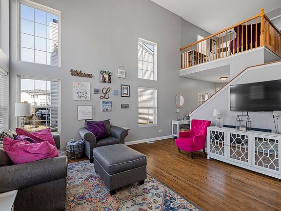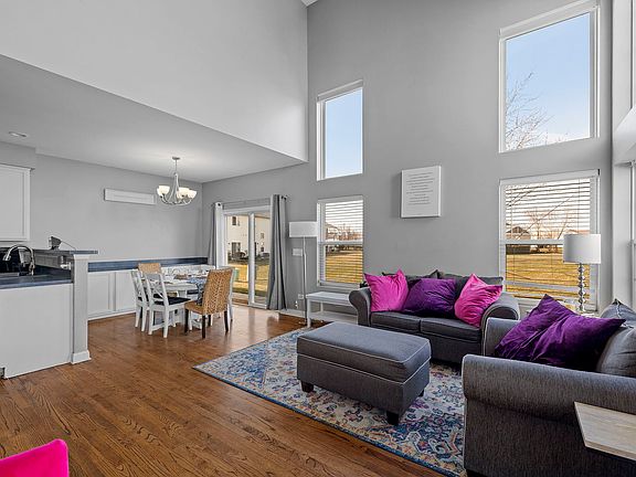 Fall in love with this beautiful, end unit townhome in the sought after Victoria Crossing neighborhood! This 2 bedroom, 2.5 bathroom home features a full, partially finished basement and 2 car garage. When you enter through the front door, you are welcomed by the bright and sunny open floorplan. The living room boasts cathedral ceilings with remote-controlled blinds on the upper windows. The dining room features a built in buffet with outlets inside of the cabinets. Up the stairs you will find a loft perfect for your office or a second living area. The primary bedroom features an en suite bathroom and large walk in closet. Some of the updates include adding the left side kitchen cabinets, hot water heater (2022) and sump pump (2021 or 2022).