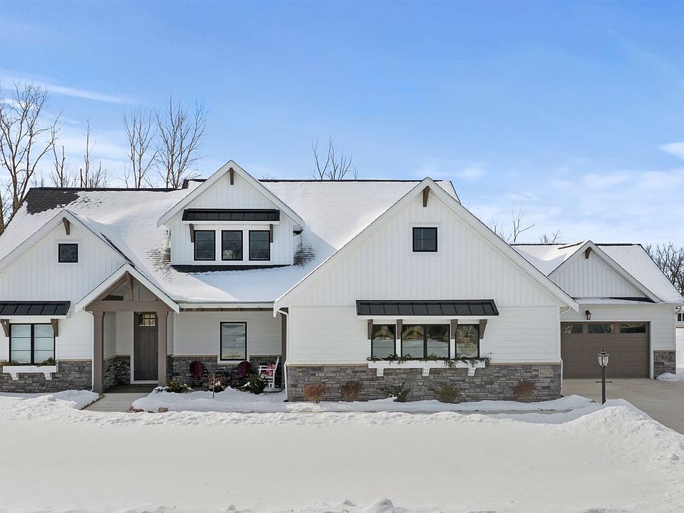 Modern curb appeal stands out on this craftsman style home in The Quarry. Custom built by Wannemacher Design and Build on a .34 acre pond lot buffered by a wooded nature area. Better than new and meticulously maintained you are certain to appreciate the quality and detailed craftsmanship. A very open concept welcomes you with the chefs kitchen overlooking the great room and nook. The kitchen features an expanded island, quartz countertops, custom cabinetry, frigidaire gallery appliances, a ceramic backsplash, a farm house sink and a walk in pantry w coffee bar. The 16x12 nook overlooks it all and has access to the covered back porch. (Did I mention the oversized 4 Car garage with two bays 25x24 & 22x22?!) The owners suite has a ceramic shower, dual vanities, commode room, linen closet and conveniently connects to the laundry room. A sliding barn door separates the guest suite on the main level making the perfect retreat. The home office/study offers privacy with double doors and a wall of built-inns. The upper level features two spacious bedrooms that share a bath, a rec room complete with bar/refreshment area and ample walk in attic storage. Additional features include; stamped concrete front porch and metal roof accents, vinyl plank flooring, 10' ceilings & cased openings, wood beamed ceiling in great room, 3 panel solid core doors, 1x6 poplar base & 1x4 poplar casing, detailed landscaping, and even wired for a generator.