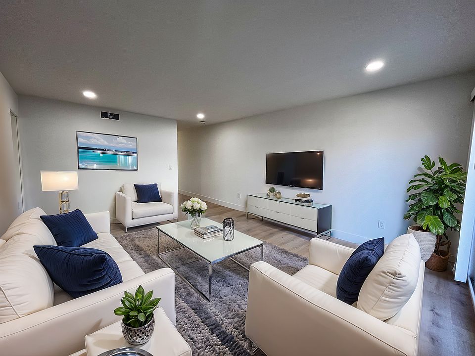 Spacious & beautiful 2 story Townhome, 2 Bedroom, 1.5 Bathroom with a private patio and 1 detached car garage. The open floor plan features a modern kitchen with modern quartz counter-tops style, stainless steel appliances, & soft close kitchen cabinets. New ac wall unit in the living room. Light ceiling fan in 2 bedrooms and modern bathrooms with sleek vanity and rain shower head. Recessed lighting, and nice flooring. For your convenance washer and dryer is included. This home is centrally located close to 405 fwy, close to Bella Terra shopping center and only 6 miles to the beach. Owner pays for water and trash.