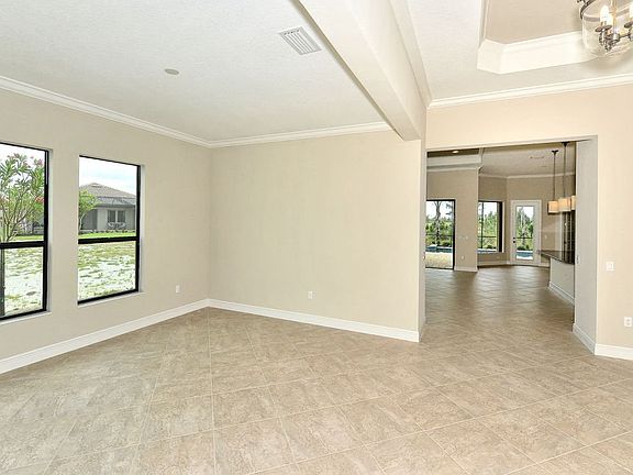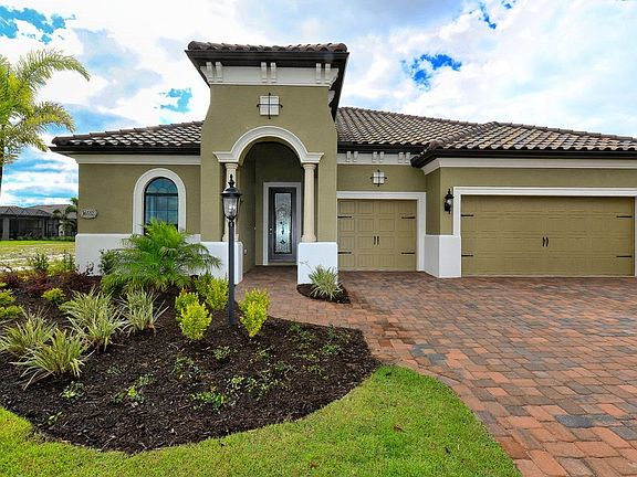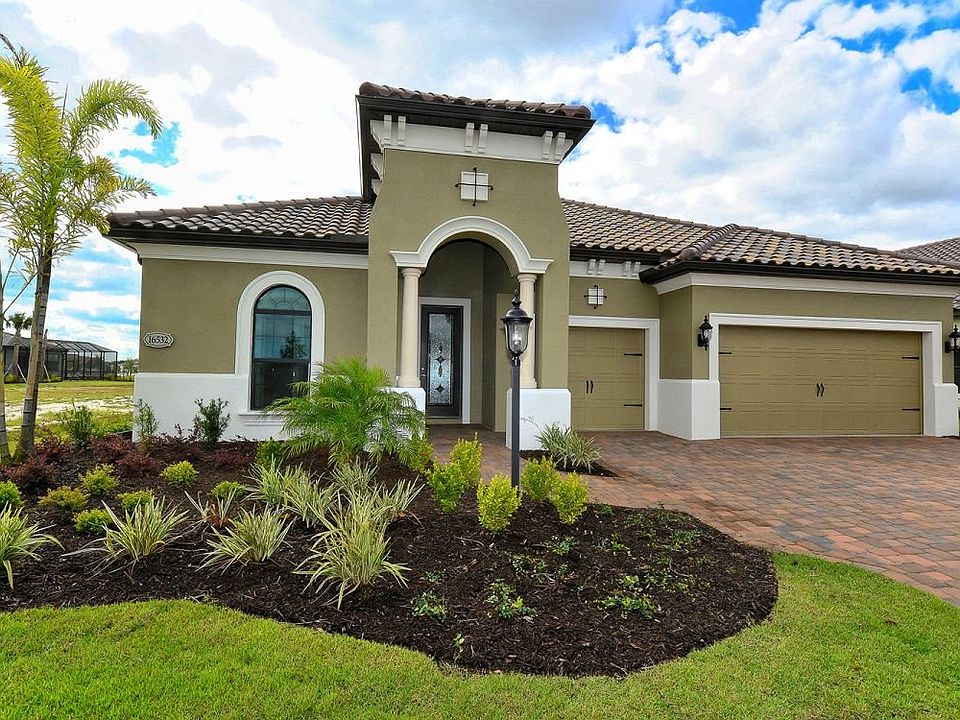 This beautiful, newly constructed home includes 3 Bedrooms and 3.5 Baths within 3,070 sq.. ft. of living space. Designer upgrades are present throughout the home, including: high ceilings with coffered ceilings in the bedrooms, 2 en-suite accommodations, all new designer lighting fixtures and glass entry doors. Chefs will delight at being in the gourmet kitchen, with its large center island, upgraded cabinetry and walk-in pantry, GE stainless steel appliances, quartz countertops and a beautiful glass tile backsplash. The kitchen is spacious and overlooks a great room and outdoor lanai. The luxurious Master Suite includes a private sitting area which comfortably fits a lounge chaise or desk, along with 2 walk-in closets, dual sinks, corner shower and private water closet. A guest room with en-suite and walk-in closet has beautiful windows and wall-to-wall carpeting. Diagonal ceramic tile, along with separate dining room, den, and a third bedroom complete the home. Elegant and stately windows welcome plenty of natural light, along with scenic views of the included swimming pool and gorgeous landscaping from the nature preserve home site. The custom designed swimming pool includes a spa and water-seating areas for outdoor enjoyment. This home is located in the Collingtree neighborhood of Country Club East, Lakewood Ranch's premier luxury community. It is situated on a quiet cul-de-sac, with beautiful landscaping. Come in today and see this all new, move-in ready home, built and presented by award-winning Neal Signature Homes.