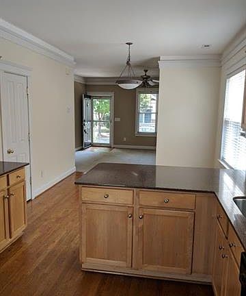 Perfect home with two bedrooms downstairs and the master upstairs along with a large sitting area. Hardwood floors in the ktichen and dining area. Granite countertops Detached two car garage. Enjoy community pool, tennis, playground, pond and access to greenway. Walking distance to upscale shopping, restaurants and movie theater.