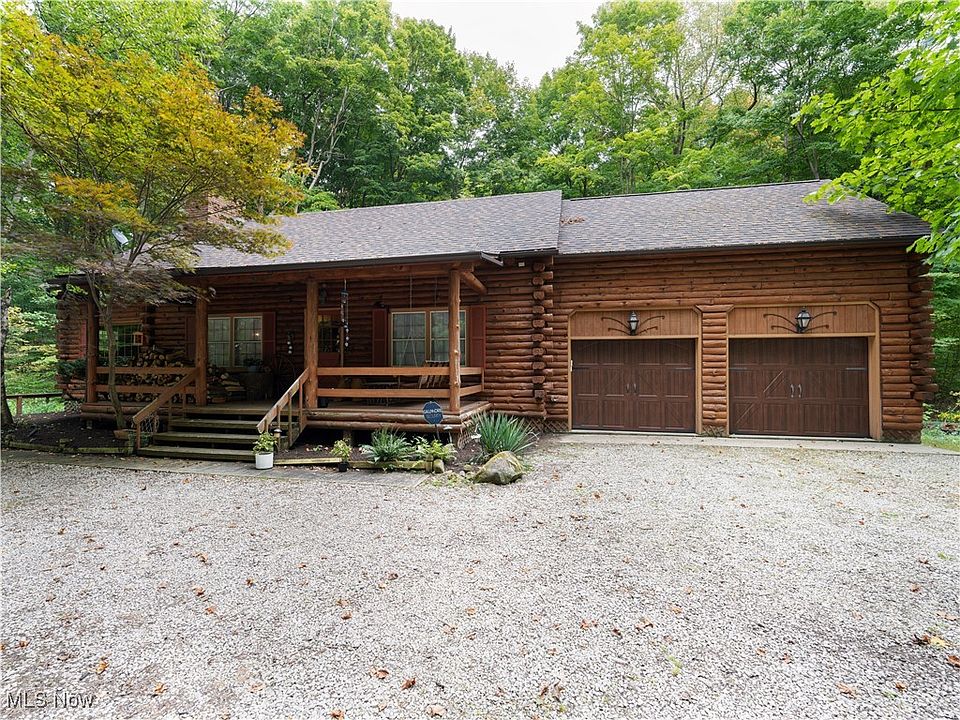 Step inside to discover an open-concept living space featuring soaring ceilings, exposed beams, and beautiful woodwork throughout. The spacious living room is perfect for cozy evenings by the full wall stone wood-burning fireplace, while the adjacent morning room provides a lovely setting for enjoying your morning coffee while soaking in the sun beaming through your gorgeous new 9 ft Pella sliding door. The well-appointed kitchen boasts new stainless steel appliances (range 2024/refrigerator 2022), ample cabinetry and flows perfectly into the dining room. Retreat to the serene first floor master suite, complete with an ensuite bath, walk-in closet and a private loft. Another half bath with new XL washer and dryer (2024) complete your first floor. Two additional bedrooms, another full bath, a walk-in attic, and dual lofts on the second level offer plenty of space for family or guests. Outside, the expansive grounds provide endless possibilities for outdoor enjoyment, from gardening to hiking. A spacious 2-car garage offers ample storage and workspace, perfect for hobbies or equipment. Experience the tranquility of country living while being just a short drive from local amenities. New Sheoga hardwood character maple flooring in all 3 bedrooms, 2nd floor art lofts and staircase (2024), New lifeproof luxury vinyl flooring in basement office and loft above master (2024), new gutters and downspouts with leaf guards added (2024), 2 new genie garage door openers w/battery back up and code entry (2024) are just some of the recent upgrades. This log home is not just a place to live; it’s a lifestyle. Don’t miss your chance to own this beautiful piece of paradise!