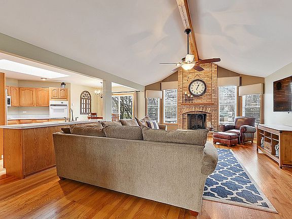 Beautifully maintained ranch 3 bedroom, 2 bath home at the end of a quiet dead-end street. This open concept home boats hardwood floors throughout. The updates are endless, roof replaced in 2012, new sump pump and hot water heater in 2014, new vinyl windows, front door and patio door in 2015, new refrigerator and microwave in 2016, new washer and dryer in 2013, both toilets replaced in 2014. The family room features vaulted ceilings with floor to ceiling brick gas fireplace. A cozy breakfast nook off of the family room and kitchen that features beautiful Oak cabinets, newer appliances, and canned lights. Master bedroom has spacious tray ceilings and the master bath offers great lighting with a newly installed skylight. The backyard is great for summer barbecue's with the large concrete stamped patio completed in 2011 and meticulously landscaped yard with an in-ground sprinkler system. This home is a MUST see!!