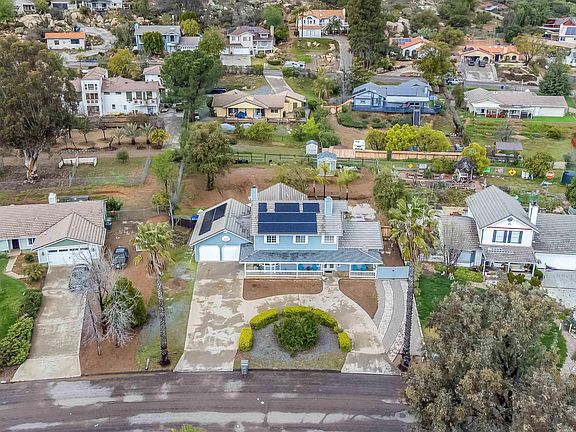 This Beautiful Family Home is Located in San Diego Country Estates at the End of a Quiet Street. This home has everything, Huge Drive through GARAGE (32x24). Home has been updated w/ Tru-guard Thermal Infrared Reflective Coating Exterior Paint w/ Life Time Warranty. Home has FULLY Pre-Paid SOLAR! Kitchen w/ Island and Stainless Steel Appliances. Mountain Views from the Front porch, backyard & Balcony off Master Bedroom. Huge Family Room & Separate Living Room. A Large Flat Usable Backyard! Enjoy all that SDCEA has to offer; 2 Community Pools, Spa, Private Parks & Playgrounds, Summer Concerts in the Park, 4th of July Parade, Many events all year in the park. San Vicente Golf & Resort. Oaks Grill, Par Lounge, Equestrian Centers, Horse and Hiking Trails throughout Entire Community. The Recreation Center includes after school care and summer camps. Enjoy Hiking to Mt Gower from your front door!!