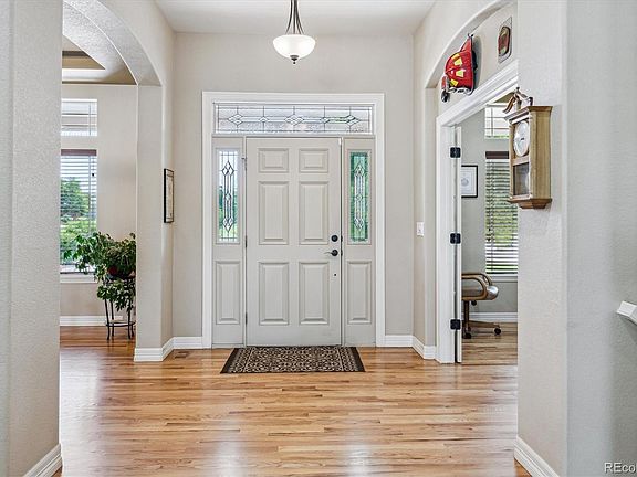 RV owners dream! Lovely, light filled, updated ranch home. The oversized primary suite has a 3-sided gas fireplace and mountain views, 5 piece attached bath with new shower and a huge closet. The open floorplan includes 2 additional bedrooms, updated full bath, study, large great room with gas fireplace and huge windows, formal dining room and full unfinished basement. The kitchen has granite counters, Alderwood cabinets, stainless appliances including a brand new refrigerator, a huge pantry, double ovens and a gas cooktop. Carpet in the primary, down the stairs and in the additional bedrooms is brand new. Items replaced in the last 5 years include a smart HVAC system, high impact roof, and insulation above the living areas. The house is on a 2,500 gallon septic system and Todd Creek Water for both house and irrigation. The entire property has been professionally landscaped with low maintenance perennial flowers and shrubs. The extensive sprinkler system has 13 zones and a drip on every live plant on the property. The majority of the system can be controlled with a phone as can the security system equipped with cameras. There are many special features that make storing an RV convenient. The large bay in the RV garage is 50 feet long and can accommodate the largest class A RV on the market. It is also equipped with indoor and outdoor 220 50 AMP RV service, as well as 2 220 30 AMP service outlets. The cement driveway leading to the RV garage and the interior cement floor has a reinforced pad able to handle the weight of the largest RV's. This home is private, quiet and squeaky clean in and out.
