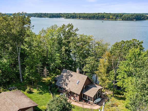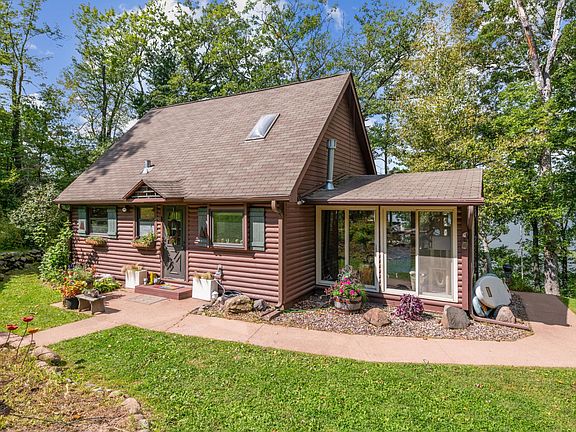 Just a short drive from the Twin Cities, nestled on a private wooded lot, you can own this piece of northern Wisconsin paradise. Elevated just above the 397-acre recreational lake, the 3-bedroom 1.5 bath cabin is the perfect place to start sharing family memories. Lounge on the panoramic deck or gather around the fire pit and enjoy the amazing sunset views every night or enjoy movies and games in the 4-season room with views all around. You can enjoy your new cabin year-round with 2 gas fireplaces and an updated furnace. There is a paver patio that is lakeside next to the waterfront storage shed equipped with electricity and easy access to the sandy bottomed lakeshore shore and dock. Recent updates include all new flooring throughout the main level of cabin, granite counter tops and cabinetry, all new high-end appliances including an Induction stove, refrigerator, dishwasher and microwave. A new spiral staircase leads to the lofted 3rd bedroom area. Other updates include a fun wine/bar feature wall, new gas fireplace insert in dining/living room and stone surround. If you need additional room, the cabin is situated perfectly for expansion in 3 directions on this large .78-acre lot. If you are looking for great activities away from the lake there are numerous golf courses within 20-30 minutes, ATV/UTV/snowmobile trails just a mile down the road, great restaurants, antique stores and so much more! Don’t miss out on the opportunity to see this fabulous cabin!