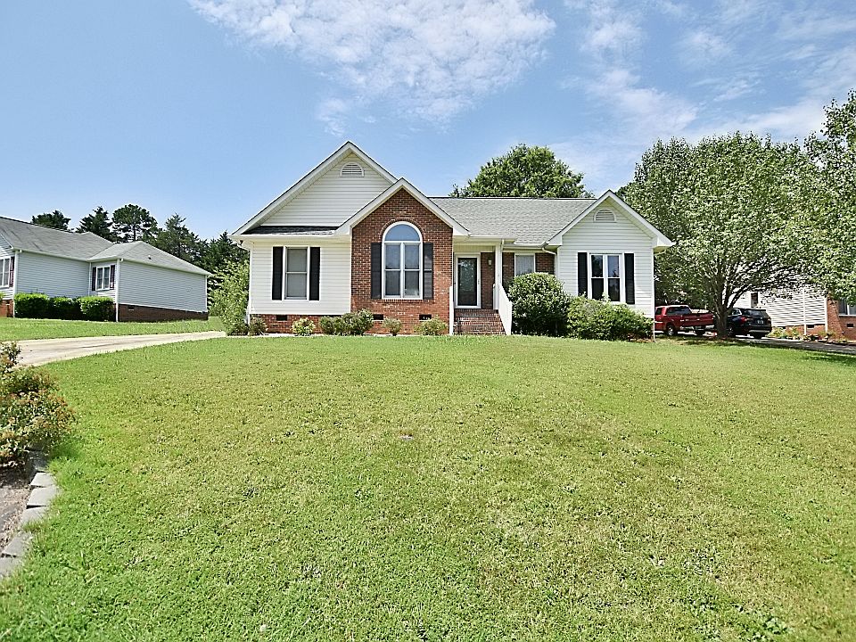 This 3BR/2Ba ranch home is the perfect starter home. The front porch leads you into a nice great room that has plenty of sunlight and a fireplace. Bright and cheery dining area, kitchen has lots of counter space and a breakfast area. Beautiful master suite has trey ceiling, large walk in. Master bath has a stand-up shower & garden tub. Relax on the deck overlooking the fenced back yard.