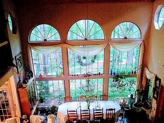 Extreme custom home, 2 x 6 construction, 31 ft ceilings, passive solar, 3/4 acre pond, 2 creeks, completely wooded, convenient to two major cities (Raleigh and Durham), in restricted development. Horses allowed. House was a co-op Art project designed and built by present Industrial Designer/contractor/owner and Professional Artist wife.