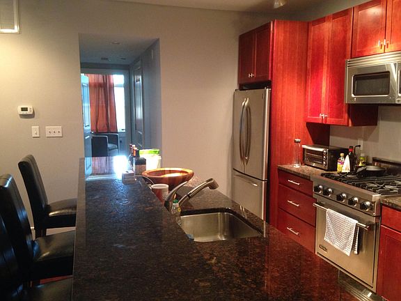 -Amazing location, amazing building, amazing space -Walk Score 97 -Unit is one floor up from ground level, elevator available -Wide open floor plan, ceramic tile floor in kitchen, hardwood throughout the rest -Private patio area -Secured garage parking space -Viking gas range and microwave, Bosch dishwasher, lots of bar, counter, and cabinet space -Washer/dryer in unit -Master bedroom with walk-in closet and balcony -Storage unit with locked door, next to parking space -Water and gas included in rent -Pets on case-by-case basis
