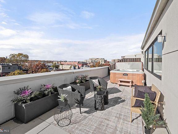 Discover penthouse luxury with unparalleled views in Adams Morgan’s sought-after Lot 33 boutique building. This 2 bedroom, 2 bathroom unit’s unique location at the very top of Meridian Hill gives this two-level residence a stunning, 180° view of the D.C. skyline – one of the best in the city – including vistas of the Washington Monument and National Cathedral. This soul-stirring, unobstructed panorama becomes more breathtaking at sunset; enjoy it from the comfort of your own 630-sq. ft. rooftop terrace, a private oasis perfect for outdoor dining and social gatherings, featuring a luxurious 6-person Hot Springs spa and fixed gas line and water spigot ready for an outdoor kitchen or fire pit installation. Celebrate each 4th of July with a front-row view of the National Mall fireworks. The main level features an expansive open floor plan that is soaked in natural light. This space is framed by floor-to-ceiling windows that open to Juliet balconies, creating a seamless indoor-outdoor flow. A newly-renovated kitchen features quartz countertops, a matching backsplash, Viking range, and newly-upgraded appliances, including a top-of-the line LG refrigerator and Bosch dishwasher. The primary bedroom holds a generous walk-in closet, ideal for maximizing storage space. The second bedroom and bath are situated on the opposite side of this level offering privacy when needed. The spacious living area with rich new hardwoods and newly-replaced windows throughout is designed with entertaining in mind, allowing uninterrupted transitions from intimate gatherings to larger soirées. A discreet closet holds a brand-new LG washer-dryer stack. Ascend to the upper level to discover a loft sitting/office area that leads to your outdoor refuge for relaxation and entertainment. With two deeded garage parking spaces and two storage units, convenience meets sophistication in this dream residence. The Lot 33 condo is pet-friendly with elevator access and sublimely positioned for city living, just steps away from the heart of Adams Morgan’s dining scene, and a comfortable walk to the restaurants and shopping of Mt. Pleasant and the 14th St./Logan Circle corridor. A quick stroll finds you at the National Zoo, Rock Creek, Meridian Hill, Kalorama, and Walter Pierce Parks. To top it off, the block boasts a Harris Teeter, allowing convenient grocery shopping without crossing a street. After enjoying all the neighborhood has to offer, this quiet back corner unit is the perfect sanctuary for you to unwind.
