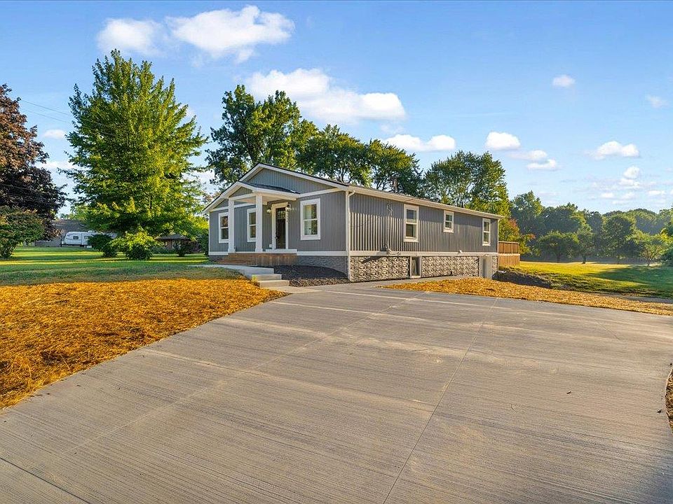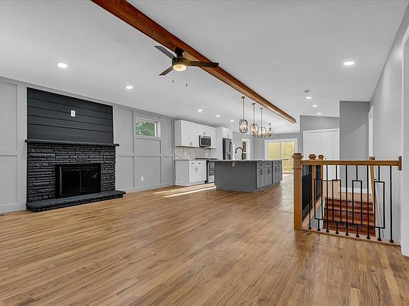 Welcome to your beautifully renovated ranch -- completely updated from top to bottom! This stunning raised ranch offers 5 bedrooms, 3 full baths, and over 3,000 square feet of finished living space, perfectly situated on 4.01 acres of peaceful privacy. Step inside and be greeted by an inviting open-concept layout. The spacious living room features a natural fireplace and seamlessly connects to the dining area and chef's kitchen. Enjoy an oversized quartz island with ample seating, soft-close cabinetry, and abundant storage -- perfect for gatherings and everyday living. A front-entry mudroom/laundry area provides convenience, while a stylish office with glass French doors offers the perfect work-from-home setup. The main level includes three generous bedrooms, including a tucked-away bedroom off the living area. Don't miss it! The primary suite features a walk-in closet and a beautifully designed ensuite bath. Red Oak hardwood floors flow throughout the main level, adding warmth and elegance. Great natural light throughout. The finished lower level provides even more living space -- ideal for entertaining, a family room, or guest quarters -- with two additional bedrooms, a walkout to the backyard, and a second laundry hook-up for added flexibility. Step outside to enjoy the 16x30 cedar deck overlooking your private backyard oasis. Major updates include a roof, HVAC system, A/C, and all-new Anderson windows. This home is truly move-in ready -- every detail has been thoughtfully updated for modern comfort and style. BATVAI. Bonus: Lot split available!