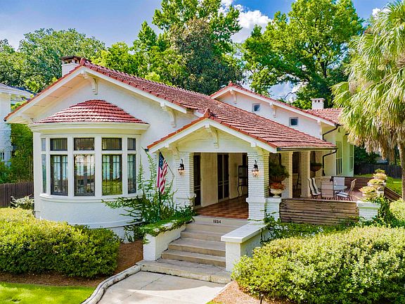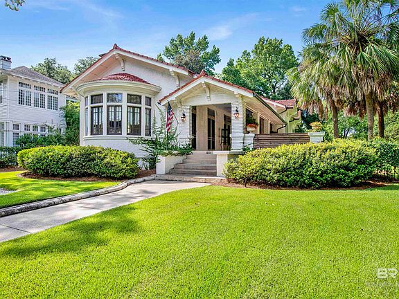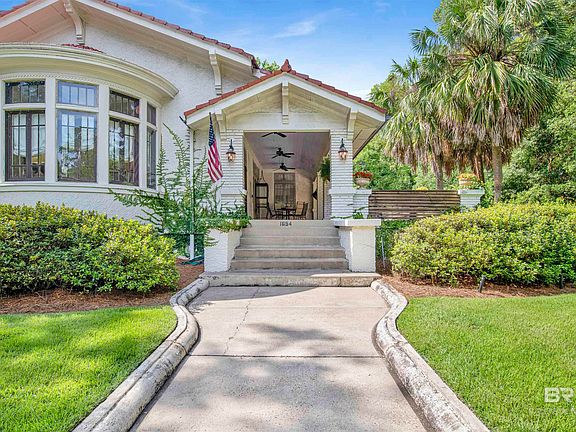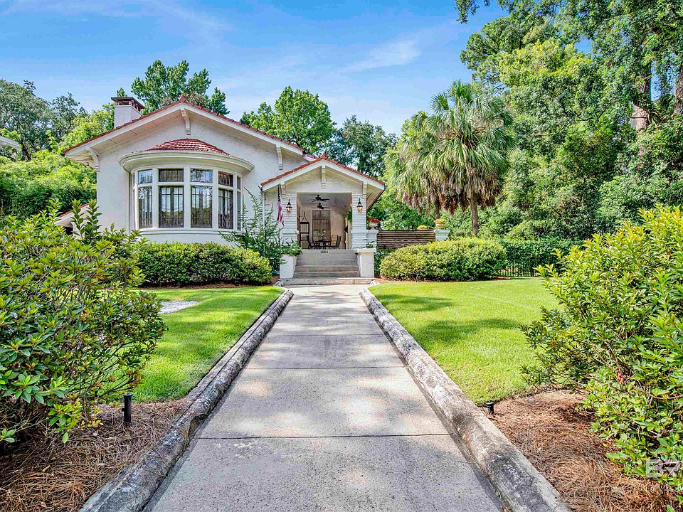 Coming Soon...Happy 100th birthday to this Government Street beauty! Designed by local architect, C.L. Hutchisson,Sr. and Built in 1924, this home is a true Mobile treasure, known as the "Elephant Walk." This iconic downtown gem has been well maintained and updated throughout. Approaching the front, you are lead to a grand tiled veranda that overlooks the lush front and side yards. French doors surround the entryway, ideal for hosting indoor/outdoor gatherings. The "L" shaped foyer surrounds the office (formerly a music room) and is highlighted with Roman-bordered tile floors and antique pendant lights. The bright and spacious formal living room showcases a massive bay window, large fireplace, and coffered ceiling. The formal dining room boasts a beautiful fireplace, coffered ceiling and is grand enough for large dinner parties or gatherings. A butler's pantry/breakfast room charms with an intimate seating area and storage galore in original cabinetry. The cottage-style kitchen offers new tile flooring, commercial-style gas range, butcher block countertops, porcelain farmhouse sink and painted cabinetry. Past the kitchen, to the back of the house, is a flex space currently used as a large laundry room but would make a cozy den, workout room or office. Three generously sized bedrooms are bathed in natural light and all bathrooms have been completely remodeled! Truly one of a kind, this Arts and Crafts style home shines from the outside-in and has been meticulously maintained down to the basement. This home has historic charm with modern conveniences such as period moldings, stunning hardwood flooring, all new electrical wiring and is generator-ready. The backyard features a double garage and a storage building or potential guesthouse. Buyer to verify all information during due diligence.