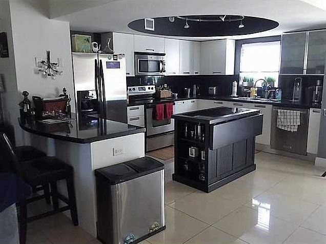 A stunning unit with tiled floor throughout, lovely open kitchen with updated appliances. Over sized living area and beautiful roof top terrace, great sunset view from roof top. A must see home!!