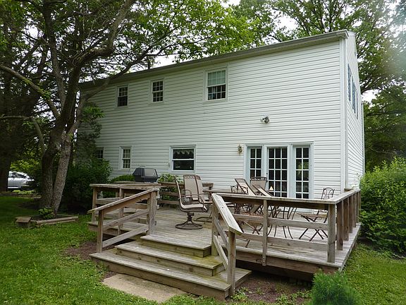 House is elevated and situated perfectly on a 1/2 acre site, front covered porch, 2 year old rear wood deck, floor to ceiling stone fireplace, partially finished basement, updated vinyl siding, replacement windows, replaced garage doors, wood floors under carpeting, in need of interior cosmetic updating (priced accordingly).