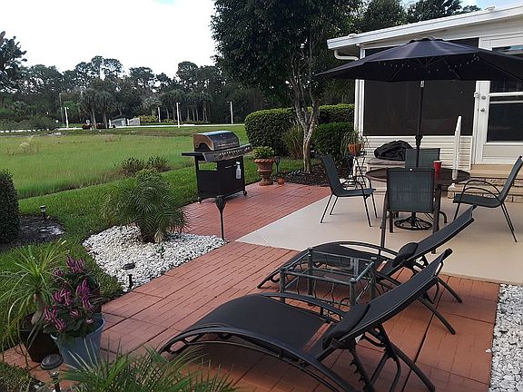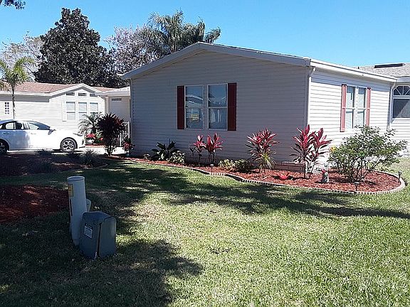 This a sweet little home in the middle of FL Partial Furnished. Land Lease 923.00 per month. Clean well maintained. several up grades to home and yard. Garage is a handy man's dream. New epoxy floor, 2 nice custom built work benches, Peg board walls and ample storage. In the last 3 years (new roof/air conditioner/lawn irrigation pump and motor/new dishwasher/fridge/ new furniture/living room and kitchen has been painted. Master Bathroom has His And Her Sinks with Private Shower. Back yard and Patio is private.Great for a cook out, relaxing or bird watching. Grill and patio furniture stays with the home. 200 square foot screened in lanai.