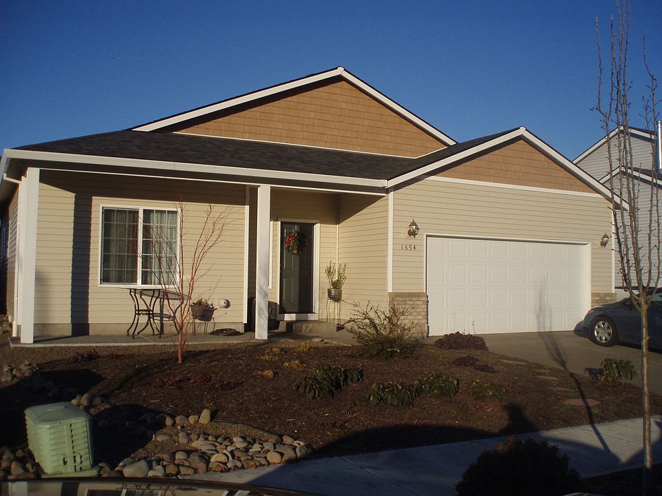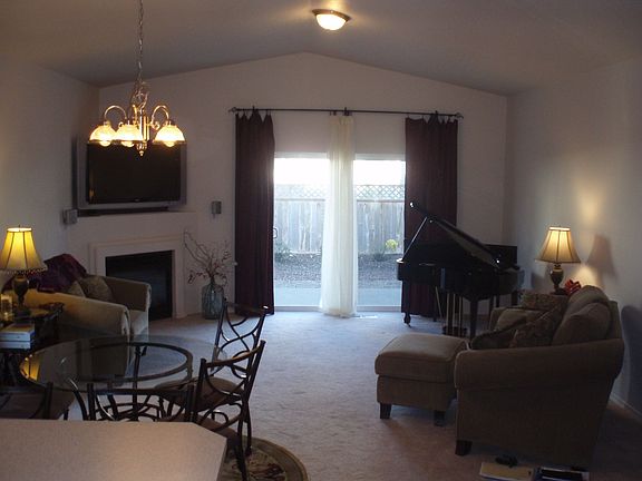 Accepted Offer with Contingencies. This 3bd 2ba house has an open floor plan with vaulted ceilings, a great room with a gas fireplace and sliding glass door that leads out to a landscaped yard. The master features double vanities, soaking tub, and a walk in closet. Two solar attic fans. separate laundry room. Man door off the side of the garage.