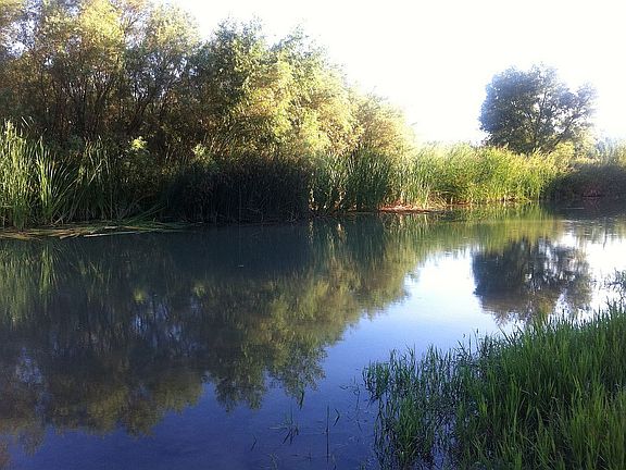 A view of the Verde River from the family room, patio and kitchen. Privacy from all windows. High ceilings and custom finishes throughout thanks to a complete gut and remodel in 2007 that took the old home to the slab. Granite counters in kitchen and baths, new windows, doors, drywall, insulation, trusses, roof, fixtures, flooring, stucco, septic w/leach lines, new water softener (2014), new more efficient hybrid water heater (2012), water distiller (2014), 2nd A/C unit due to added square footage. Detached 2 car garage, additional one car garage added 2012. Vermont Bun Baker wood burning oven/fireplace installed in 2012, heats the whole house on cold days. House is fully electric: Solar power installed 2012 - it provides all the power the house needs, $0 electric bills instead of over $300/month previously during heat of summer and coldest months of winter. Luxury master bedroom and bath, his and her walk-in closets. Beautiful pool, fully enclosed. Solar powered gated entry. New deeper well added further from septic system. Back yard is lush and green. Horse property should you choose to include them. The neighbor has provided a signed and notarized statement that she will provide access to the river for the new owner.