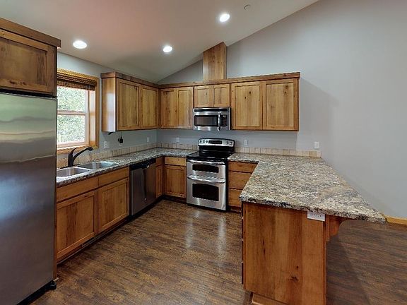 Sunny south slope, on dead end Street with very private and secluded back yard. Nice quiet area to enjoy your morning coffee out on the back deck that is also plumbed for gas grill. Stainless steel appliances in the kitchen including a double oven. All 3 bedrooms and both baths are on the main level with a nice family/theater room in the basement(built in projector included). Call and set up an appointment to see this one today!