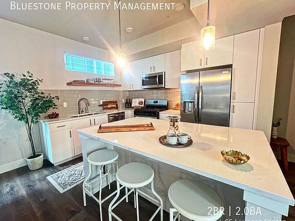 - Exterior features: Heating system: ForcedAir, High ceilings, Modern bath fixtures, New construction, No Utilities included in rent, No smoking, One Year Lease, Quartz kitchen counters, Stainless steel appliances