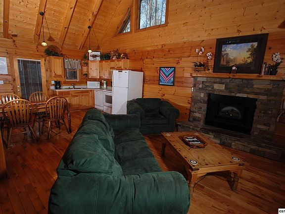 Welcome to Bear Camp Cabin located in Hidden Mountain in Sevierville, TN. Nestled in the woods, this cabin offers a semi-private setting in an easy to access location. When you enter the cabin, you are greeted with the great room - Kitchen, Living Room and Dining Room all in one large open area. The gas fireplace in the Living Room is perfect for snuggling up on cold winter nights. Just off the Living Room, you will find Bedroom 1. With a beautiful stacked stone jetted tub, soak away your worries and relax. Bathroom 1 is housed on this level. Located on the main level, you will find the back porch area where the hot tub is housed as well as a nice sitting area for relaxing after a day of fun in the Smokies. Upstairs, you will find the loft area that houses the pool table. Downstairs, you will find a recreation room perfect for those evenings when you just want to relax. The large projection screen is perfect for watching your favorite movie. Just off the recreation room, you will find another bedroom with stacked stone jetted tub. Bathroom 2 is located on this level. Outside, you will find another porch along with a porch swing. This cabin is about relaxing and recharging your batteries.