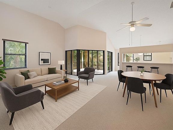 One or more photo(s) has been virtually staged. Discover the perfect blend of space, comfort, and opportunity in this desirable three-bedroom, two-bath end-unit condominium located in the highly sought-after gated community of The Landings. Enter through the welcoming first-level foyer and ascend to the light-filled main living area, where vaulted 13-foot ceilings create an airy, open ambiance. With approximately 1,775 square feet of living space, this residence offers a well-designed split floor plan that ensures privacy while maintaining an effortless flow for everyday living and entertaining. The living and dining areas seamlessly connect to the kitchen, complete with a convenient pass-through bar—perfect for hosting gatherings or casual dining. The spacious primary suite serves as a relaxing retreat, featuring a large walk-in closet and an oversized ensuite bath with dual sinks and a spa-inspired shower. Two inviting guest bedrooms provide comfortable accommodations for family or visitors. Enjoy peaceful moments on the screened lanai, surrounded by lush natural scenery, or take advantage of the attached one-car garage for added convenience. As a resident, you’ll have access to The Landings Racquet Club, offering 8 Har-Tru tennis courts, pickleball, a heated swimming pool and spa, fitness center, meeting rooms, and a library—the perfect extension of your home and lifestyle. Set within a secure, 24-hour guard-gated community, The Landings is renowned for its scenic walking trails, lush tropical setting, and direct access to Sarasota Bay. Ideally situated near top-rated schools, world-class dining, shopping, arts, and the beautiful Gulf Coast beaches, this community embodies Sarasota living at its finest.