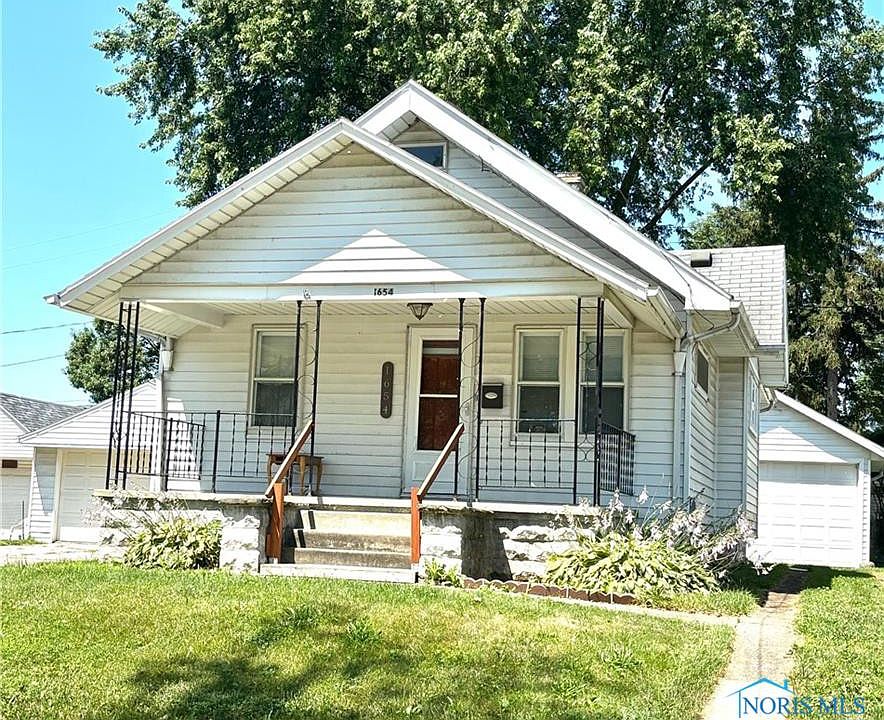 Nice two bed bungalow on double lot with TWO GARAGES! One 2-car and one 1-car on this property - great for car storage or use one for a workshop. Large front porch on home and nice backyard area. Basement was waterproofed approx. 8 years ago by Everdry, warranty is transferable. Sump in basement. Add some TLC to this home & enjoy a great property. Furnace, air, roof approx. 20 yrs old. Being sold "as is" - seller unable to provide repairs. Cinch home warranty provided at closing.