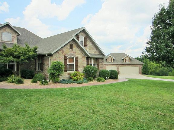 Stunning All Brick home with multiple living options custom built by Joe Kindrick of JK Construction. This unique home radiates quality and style. An open floor plan with custom built-ins and moldings throughout that sits at the end of a cul-de-sac overlooking 3 Acres of trees and privacy. Huge open living area with spacious kitchen..built-in pantries and plenty of storage. Lots of natural light with lovely custom arched windows showcasing awesome views. On the main level the master suite and two additional bedrooms plus and office that could be an additional bedroom. Upstairs 2 bedrooms or living area. Lots of storage in the non-basement home. Adjacent to the home sets a huge Detached 3 Car Garage/Shop. Absolutely a truly Impressive Property in Nixa Schools.