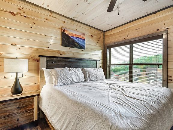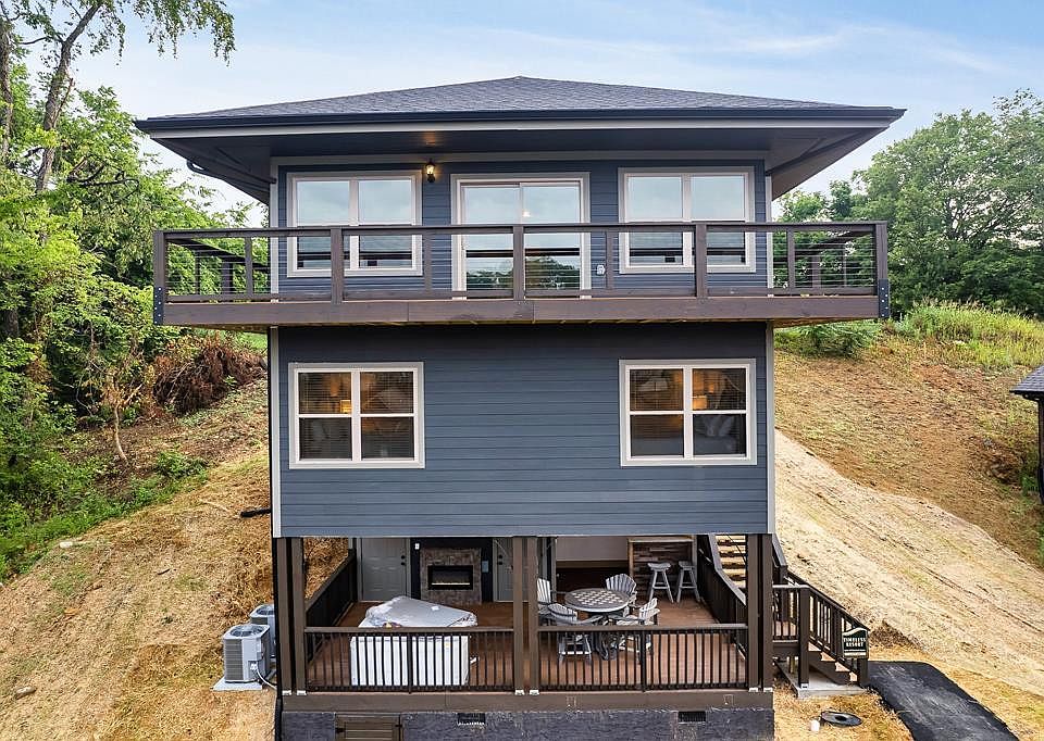 An incredible opportunity to own a unique treehouse design cabin! Centrally located in Sevierville with mountain views without having to worry about mountain roads! This cabin offers a stunner wrap around deck and brings the eagles-eye view into the home as well! The lower level of the cabin offers a spacious patio with a hot tub, TV and outdoor electric fireplace! With modern touches all throughout this cabin, you and your guests will feel right at home! Offered fully turn-key!