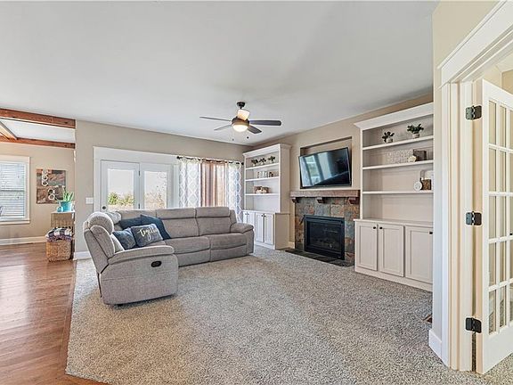 - Features: Built-in Features, Carpet, Ceiling Fan(s), Fireplace