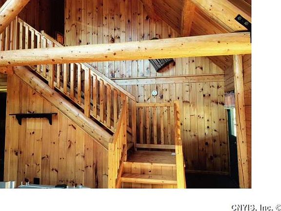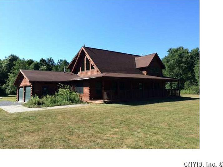 Beautifully constructed in 2009 this log cabin is a steal! Built with only quality! 6 acres partially wooded. Lovely knotty pine throughout. Kitchen has cherry cabinets, granite counters and a center island. Master bedroom down with full bath and walk in tiled shower. 1/2 bath and laundry also on main floor.Upstairs has 2 spacious bedrooms, reading nook and full bath. Two car garage. This is country living at its finest!!