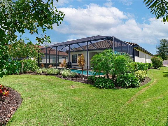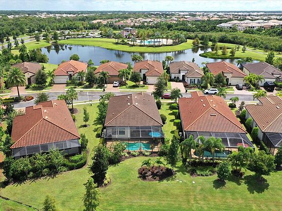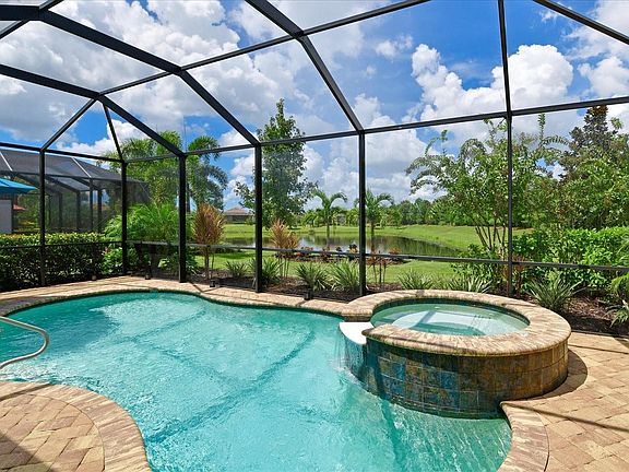 Located in the coveted, amenity-rich Country Club East, where natural beauty mixes with winding streets, luxury residences, and a neighborhood atmosphere, this true WCI-built, lakefront home is the perfect place to experience the pinnacle of the country club lifestyle. An arched front porch welcomes you into an open-plan residence, where you will find tray ceilings, plantation shutters, an inviting neutral color palette and engineered wood floors. Upon entering, a glimpse of the shimmering waterfront emerges through a rich canopy of mature palm trees and manicured landscaping. Whether relaxing as a family or entertaining guests in style, you will find all the spaces capture essence of a life well-lived. The gorgeous, gourmet kitchen is sure to please your inner chef, with gas-cooking, stainless steel appliances, built-in ovens, an oversized island and walk-in pantry. The master suite boasts a spacious bathroom with frameless walk-in shower and custom walk-in closet. The front flex-room functions as a sitting area, office or dining room. Enjoy privacy on the lanai with a generous covered living area for relaxation and tranquility while enjoying the heated pool and spa, dining al fresco, or just lounging around. The separate laundry room is spacious and includes cabinetry and soaking sink. The residence is only a short walk to the clubhouse, fitness center and large resort-style pool. An optional membership is available for fine dining, cocktails, social events, and golf, and all are located right in Country Club East at "The Lodge." Other features to note: on demand tankless water heater, great room is pre-wired for surround sound, newer pool pump, hurricane shutters, lanai is pre-plumbed for a summer kitchen.