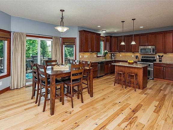 A gorgeous, well cared for two story family home in Clive's highly sought-after Berkshire North neighborhood. You're welcomed by an open floor plan w/ expansive ceilings & hardwood floors. A formal dining room & office sit at the front of the home. The great room features a fireplace & large picture windows overlooking the yard w/ mature trees. A beautiful kitchen offers granite counters, stainless appliances, abundant cabinetry w/ under cabinet lighting, an island & opens to a spacious eat-in kitchen w/ slider access to the over sized covered deck. A mudroom w/ custom lockers & half bath finish this level. Upstairs the spacious master suite has a vaulted ceiling, two large his/hers walk-in closets, dual vanity, jetted tub & tile shower! 3 addtl. bedrooms also upstairs w/ 2 more full bathrooms. The daylight lower level offers a large family/rec room, custom wet bar & full bath! Outside enjoy the 3 car garage, professional landscaping, mature trees & proximity to Shuler Elementary.