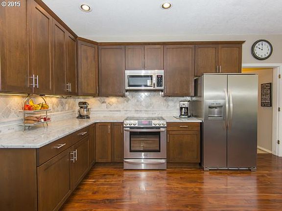 Gorgeous remodeled traditional featuring gourmet kitchen w/ SS appliances, custom cabinets & eat area. Family room off kitchen features wood fireplace & slider to yard. Formal dining & living room w/ picture windows. Spacious master suite w/ private bath, dual closets & attached bonus room. Hardwoods throughout main level & soaring vaulted ceilings. Beautifully landscaped fenced yard w/ mature trees & patio perfect for entertaining!