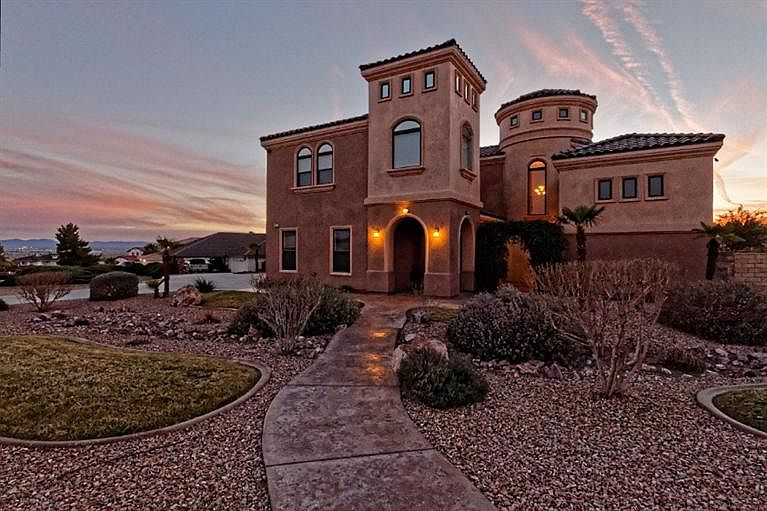 Your One of a kind Mediterranean Oasis nestled in one of the most exclusive neighborhoods on a premier corner lot in Apple Valley. This rare find and its many amenities include 5,338 square feet of luxurious custom living beginning as you walk through the wrought iron entry door. Offering 4 bedrooms and 5 bathrooms, this home is a entertainers delight inside and out. Stunning kitchen with granite, prepping island and upgraded appliances, great room with cathedral ceilings. Your movie experience stays right at home with your own theater room and surround sound, (includes upstairs and backyard), a master suite that offers gorgeous views from every window. All this before you even get to the resort oasis in the backyard. Huge pool, spa, fountain, full outdoor BBQ kitchen, custom gas fire pit area, full basketball court and practice your swing on your very own putting green. Every custom feature and upgrade has been included. Make your appointment today. Your paradise awaits!